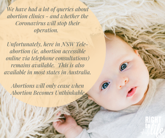 In summary, in Australia in general and in NSW in particular, pro-abortion services have taken advantage of the coronavirus – expanding their services online and via phone and continuing most of their abortion procedures unabated. The abortion industry is alive and well in Australia.