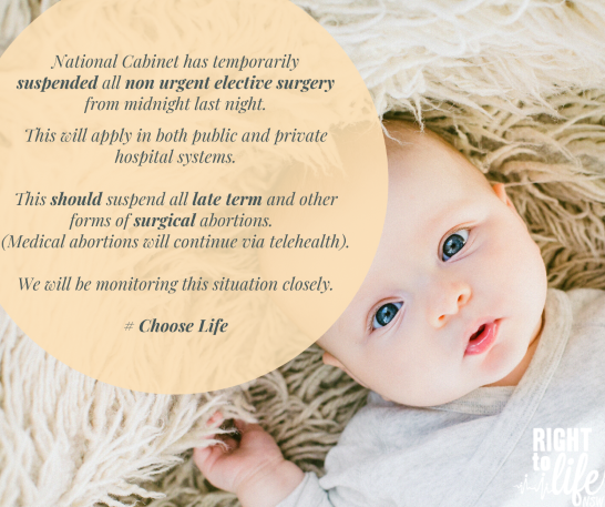 Late term and surgical abortions should be suspended under the terms introduced by National Cabinet.