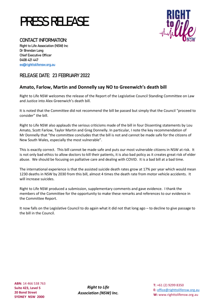PRESS RELEASE: Amato, Farlow, Martin and Donnelly say NO to Greenwich’s death bill